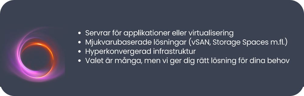 Våra skräddarsydda och skalbara lösningar gör det lätt att framtidssäkra er IT- miljö på ett flexibelt och kostnadseffektivt vis.